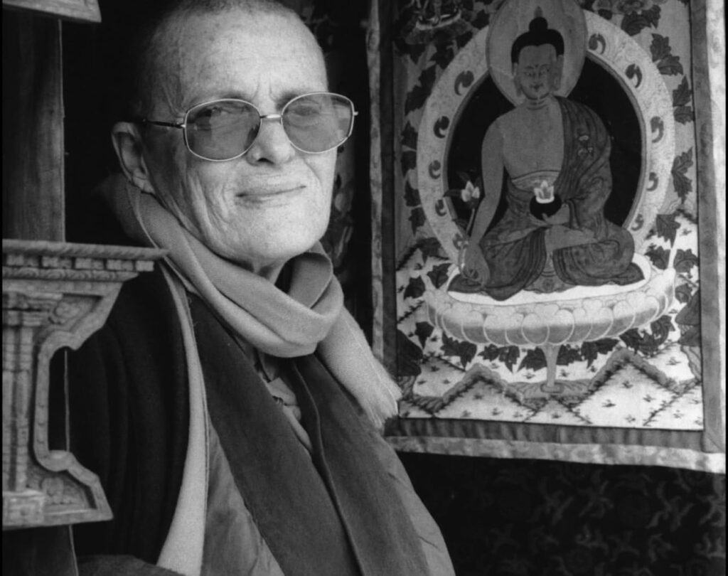 From the mid-70’s on, when she was introduced to HH Dilgo Khyentse Rinpoche with whom she remained very close, she was a deeply dedicated Buddhist practitioner. In 1977 she took vows as a Buddhist nun, receiving the Buddhist name Bhikshuni Ngawang Chödrön, or Ani Marilyn to her close friends.